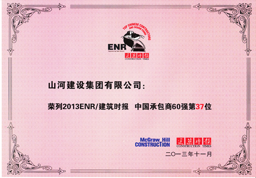 11月22日,2013ENR/建筑時報“中國承包商和工程設計企業(yè)雙60強”頒獎典禮在廣西南寧市隆重舉行,住房和城鄉(xiāng)建設部政策研究中心、中國建筑業(yè)協(xié)會、中國勘察設計協(xié)會、廣西住建廳、廣西建筑業(yè)聯(lián)合會、廣西勘察設計協(xié)會等領導出席了頒獎典禮并致辭。山河集團成功入選,位列第37位,這是集團首次申報并首次成功入選中國承包商60強企業(yè)。