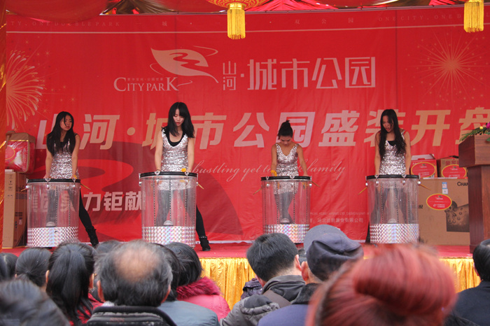 上午9時許,山河•城市公園營銷中心門前人頭攢動,許多客戶在現(xiàn)場已經(jīng)等候多時。 9時18分,在精彩的開場節(jié)目表演后,山河集團房地產(chǎn)事業(yè)部副總經(jīng)理兼益鵬置業(yè)總經(jīng)理姜薛發(fā)表了慷慨激昂的致辭,宣布開盤儀式正式啟動。外場有勁歌熱舞、小丑表演、水鼓表演等熱鬧非凡的演藝節(jié)目,加上包括51寸超大液晶電視、智能洗衣機等豐厚獎品的抽獎活動吸引了不少團風百姓的駐足。內(nèi)場更是驚喜不斷,城市公園貼心準備了糕點和茶水供客戶享用,而三房最低26萬起和最低95折的給力優(yōu)惠讓在場的置業(yè)者們激動不已,接待選房的城市公園置業(yè)顧問們應接不暇。營銷中心里不斷傳出工作人員恭喜來賓選房成功的聲音。沒多久,此次推出的1、2、3、4號樓主力戶型熱銷近260套,創(chuàng)造了團風房地產(chǎn)市場上的奇跡。