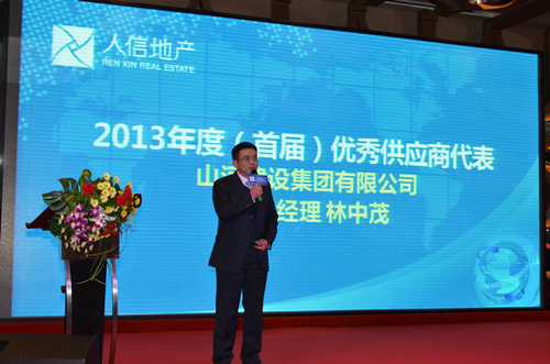 12月29日,山河集團副總經(jīng)理兼湖北公司總經(jīng)理林中茂出席人信地產(chǎn)2013年度(首屆)供方代表大會。來自全球范圍內(nèi)的近200名優(yōu)秀供應商代表應邀參會,山河集團榮獲首屆“優(yōu)秀供應商”。