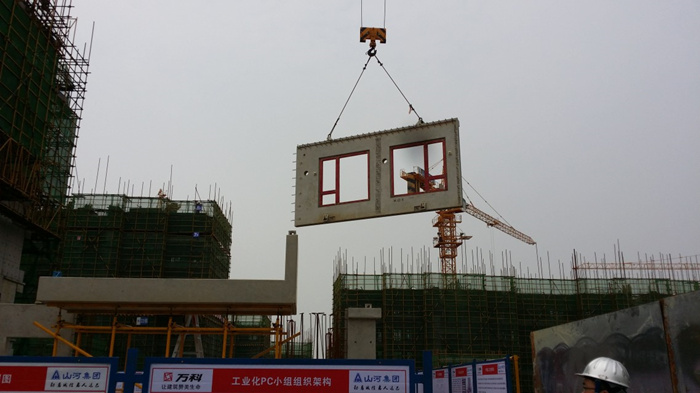 南昌萬科海上傳奇項(xiàng)目總建筑面積約為12.8萬平方米,其中18#二層以上的外墻、陽臺板和樓梯均為PC裝配式預(yù)制結(jié)構(gòu),PC裝配式結(jié)構(gòu)工程約占據(jù)18#樓外墻整體面積的51%。目前是江西省第一個(gè)工業(yè)化裝配式PC住宅項(xiàng)目,同時(shí)也是山河集團(tuán)第一個(gè)工業(yè)化裝配式PC施工項(xiàng)目。