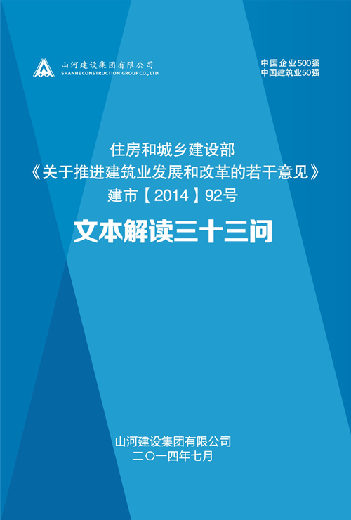 山河集團出臺住建部92號文解讀文本――《關(guān)于推進建筑業(yè)發(fā)展和改革的若干意見的三十三問》