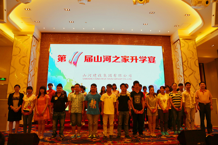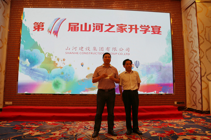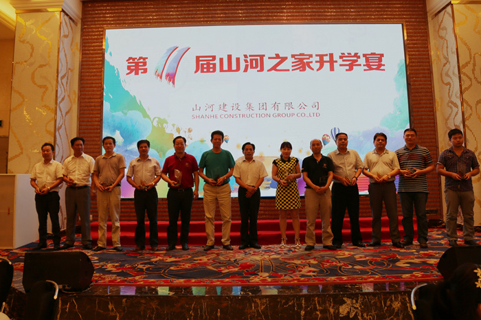 山河集團(tuán)每年都會定期舉辦學(xué)子宴和捐資助學(xué)活動,山河人無私助學(xué)的善舉給千千萬萬個寒門學(xué)子照亮了求學(xué)之路,也給他們的家庭帶來了希望和改變。為表彰在2014年第九屆捐資助學(xué)活動中的優(yōu)秀代表,升學(xué)宴的第一個環(huán)節(jié)就是由集團(tuán)公司黨委書記舒先厚向19位項目經(jīng)理頒發(fā)“慈善之星”的獎杯,同時授予湖北公司、新疆公司先進(jìn)單位的榮譽(yù)稱號。