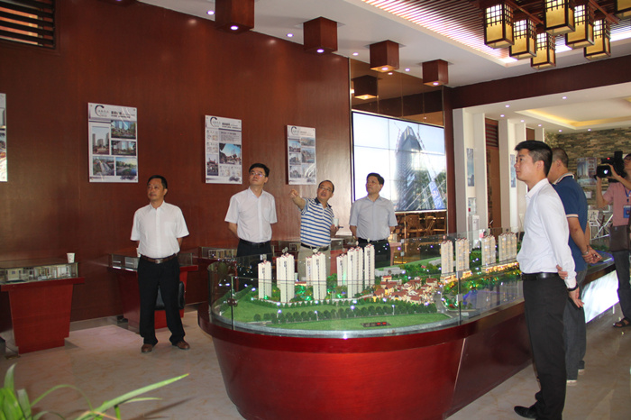 程董事長(zhǎng)及董事長(zhǎng)助理、投資事業(yè)部總經(jīng)理姚偉一行在湖南公司總經(jīng)理林江的陪同下首先來到了位于犀城廣場(chǎng)東北角的“江南熙元”售樓部。在仔細(xì)詢問了一期項(xiàng)目的產(chǎn)品類別及銷售進(jìn)度等情況后,董事長(zhǎng)指出,在縣級(jí)城市開發(fā)樓盤一定要結(jié)合當(dāng)?shù)貙?shí)情,為客戶提供滿意的產(chǎn)品,同時(shí)樹立行業(yè)的標(biāo)桿。