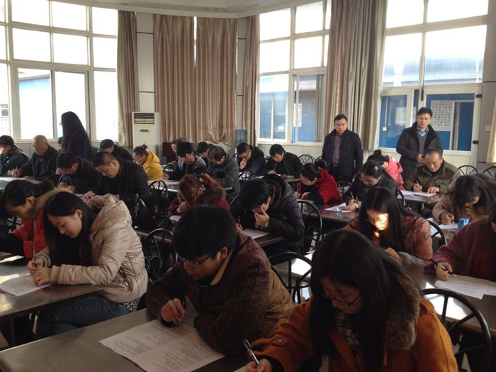 考試時(shí)間定于2014年12月13日下午14:00-16:30,考慮到地域分布因素,集團(tuán)總部設(shè)置了四、五樓兩個(gè)考場(chǎng),主要為總部、湖北公司及所轄項(xiàng)目部會(huì)計(jì)人員考試提供場(chǎng)地,其他區(qū)域公司、地產(chǎn)子公司、專業(yè)子公司也在本單位會(huì)議室安排了考場(chǎng)??荚嚥扇¢]卷形式,并通過現(xiàn)場(chǎng)監(jiān)考人員備案、遠(yuǎn)程視頻監(jiān)考、考卷A、B分類、考前發(fā)放試卷至監(jiān)考人等方式,確保了本次活動(dòng)的公開、公平與真實(shí)。