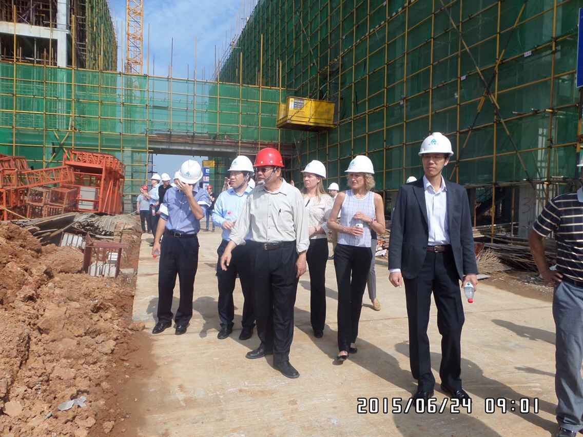 6月24日上午,武漢光谷國際生物醫(yī)藥企業(yè)加速器2.1期項目迎來最高規(guī)模的檢查。美國通用集團(tuán)和德國美施威爾領(lǐng)導(dǎo)蒞臨現(xiàn)場視察,對項目的工程質(zhì)量、安全施工要求、夏季施工程序、工程監(jiān)理等細(xì)節(jié)進(jìn)行了嚴(yán)格細(xì)致的查看。