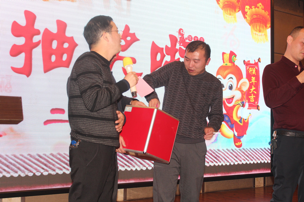 晚會(huì)中還穿插了抽獎(jiǎng)環(huán)節(jié),引起了大家的極大興趣,隨著三等獎(jiǎng)、二等獎(jiǎng)、一等獎(jiǎng)的抽取,現(xiàn)場(chǎng)都沸騰起來了,不斷掀起年會(huì)的高潮。此次晚會(huì)不僅給大家?guī)砹藲g聲笑語(yǔ),同時(shí)也拉近了同事之間的距離。公司領(lǐng)導(dǎo)與員工親情互動(dòng)、激動(dòng)人心的抽獎(jiǎng)活動(dòng),讓掌聲、歡呼聲一直在會(huì)場(chǎng)上蕩漾。最后,整場(chǎng)年會(huì)在一片和諧、溫馨、歡樂的氣氛中圓滿結(jié)束。