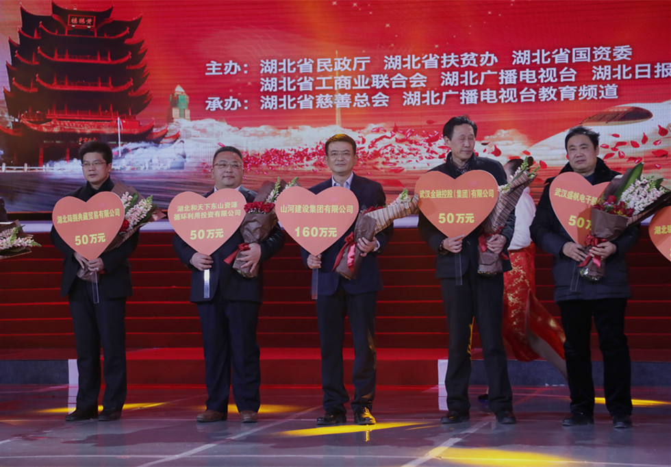 晚會現(xiàn)場,集團常務副總林中茂代表山河集團舉牌捐贈160萬元,并獲得由湖北省慈善總會頒發(fā)的榮譽證書。捐贈過程中,湖北省省委書記李鴻忠和省長王國生分別發(fā)表重要講話,感謝長期以來為全省扶貧事業(yè)作出了重要貢獻的企業(yè),希望企業(yè)發(fā)展不忘回報社會,并一直熱心支持湖北省慈善事業(yè)的發(fā)展。