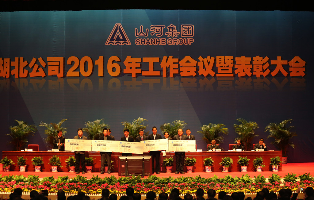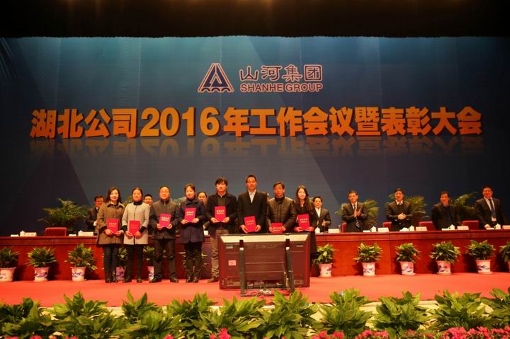2月27日上午,山河集團(tuán)湖北公司2016年工作會議暨表彰大會在洪山禮堂一號廳隆重舉行。會議總結(jié)了2015年湖北公司各項重點工作完成情況,部署了2016年湖北公司發(fā)展規(guī)劃,并對優(yōu)秀項目經(jīng)理部及優(yōu)秀個人進(jìn)行了表彰。山河集團(tuán)董事長程理財、黨委書記舒先厚、總經(jīng)理龔衛(wèi)國、執(zhí)行總經(jīng)理姚偉、常務(wù)副總經(jīng)理林中茂、湖北公司常務(wù)副總經(jīng)理柯為正等領(lǐng)導(dǎo)出席本次會議。會議由湖北公司人事行政總監(jiān)李穎主持。