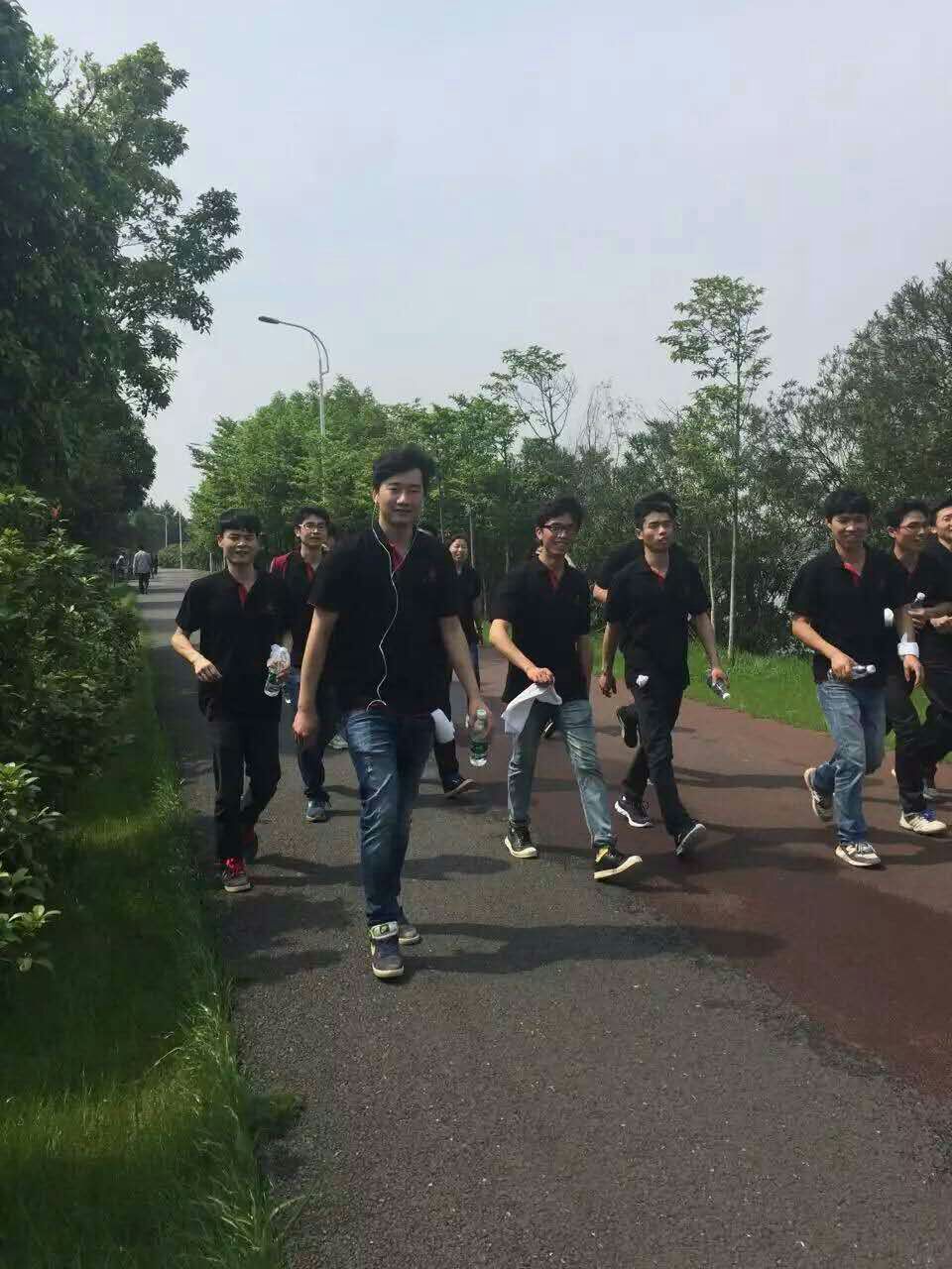 上午9點整,15支隊伍在總經(jīng)理熊善杰的帶領(lǐng)下,服裝統(tǒng)一、精神抖擻的從起點準時出發(fā)。一路下來,隊伍中女同事們體力明顯有些疲憊,原本輕快的步伐也漸漸變得沉重起來,沿途的志愿者紛紛為大家能量補給、加油打氣,隊友們也你追我趕、互相鼓勵,腳步始終追隨著山河旗幟不言放棄。