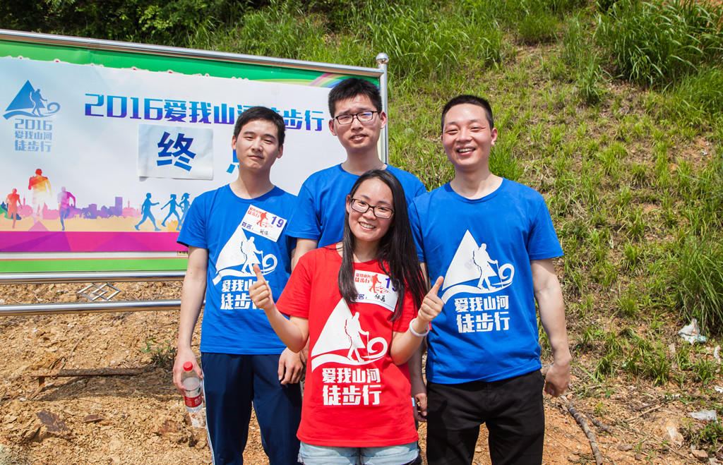 步行9公里,對(duì)于我來(lái)說(shuō),不在話下,不過(guò)要奪冠,那還是要蠻拼的,所以我們一開始就小跑。其他隊(duì)伍貌似洞察了我們的戰(zhàn)術(shù),他們都是一開始就跑。情況不妙啊,我心里想:沒(méi)事,看他們能囂張多久!我們四人一路小跑,慢慢的人群開始分梯隊(duì)了。很快就到了半程,我們落后第一名不少,我們沒(méi)有灰心,因?yàn)楸A趔w力到下半程是我們的戰(zhàn)術(shù)。返程中,有一隊(duì)友跟不上節(jié)奏,我們看著他1米8的大塊頭,欲哭無(wú)淚啊,如果他是身材矮小的小姑娘,我都要像女漢子一樣扛著她走了。我們重新調(diào)整了戰(zhàn)術(shù),并給他加油打氣,其他兩個(gè)隊(duì)友,輪流拉著他跑。在我們強(qiáng)大的精神和物質(zhì)刺激下,該隊(duì)友表現(xiàn)出強(qiáng)大的意志力。由于我們放慢了腳步,隊(duì)友慢慢恢復(fù)了體力,我們接下來(lái)的行程就很順利了,我們一起跨過(guò)終點(diǎn)的那一刻,心情很激動(dòng)。