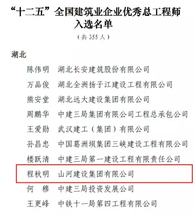 此次當(dāng)選全國(guó)優(yōu)秀總工,不僅體現(xiàn)了程秋明總工個(gè)人的業(yè)務(wù)水平及突出業(yè)績(jī),更是對(duì)山河集團(tuán)在建筑行業(yè)的綜合實(shí)力和技術(shù)水平的肯定,將進(jìn)一步推動(dòng)集團(tuán)建筑主業(yè)的持續(xù)健康發(fā)展。