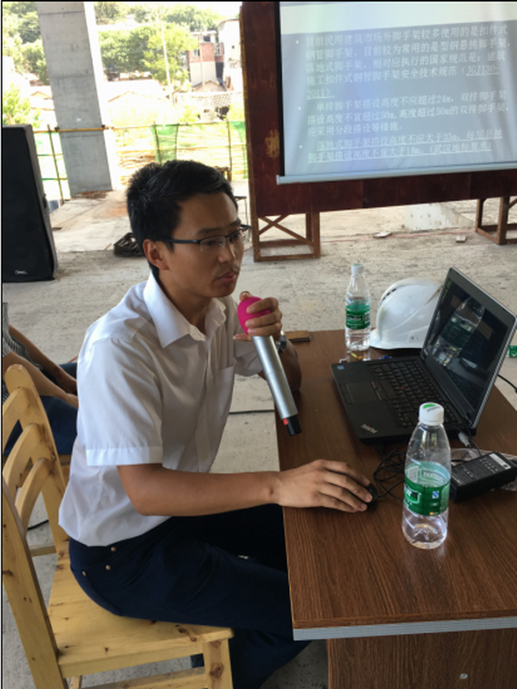 最后,湖北公司安全部主管楊根源就當前各個項目的外架搭設(shè)情況進行了匯報,并重點分析了外架搭設(shè)中存在的通病以及腳手架的搭設(shè)和安全防護措施。