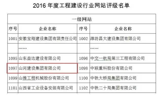 近日,由中國施工企業(yè)管理協(xié)會開展2016年度工程建設(shè)行業(yè)網(wǎng)站評級活動中,山河集團(tuán)官網(wǎng)以完善的功能和良好的品牌體驗(yàn)被評為“一級網(wǎng)站”榮譽(yù)稱號。