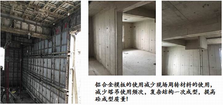 在質(zhì)量管理標(biāo)準(zhǔn)化上該項(xiàng)目在每個(gè)分項(xiàng)工程施工前,均編制詳細(xì)可行的施工方案,并進(jìn)行全面的技術(shù)交底;并且現(xiàn)場采用鋁模等先進(jìn)推廣技術(shù)。