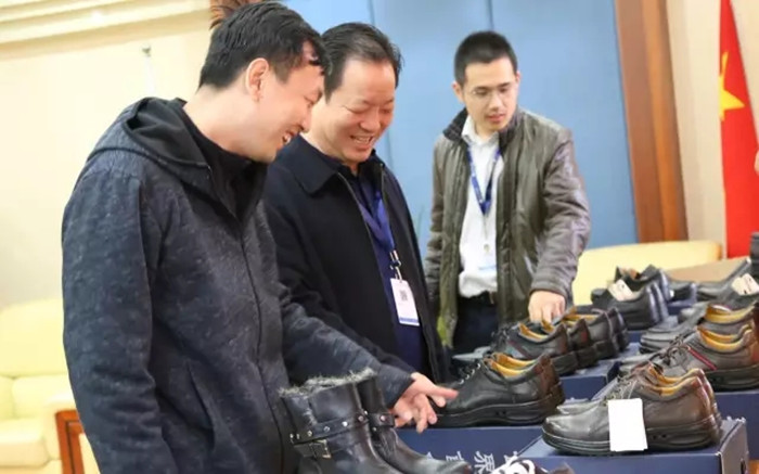 下午2:30,一雙雙從廠家拖來的樣品鞋,整齊有序地?cái)[放著。