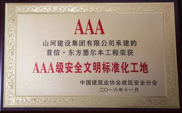 “AAA級(jí)安全標(biāo)準(zhǔn)化工地”是全國(guó)安全文明施工的最高獎(jiǎng)項(xiàng),被業(yè)內(nèi)譽(yù)為安全文明施工方面的“魯班獎(jiǎng)”,今年全國(guó)共500項(xiàng)工程獲此榮譽(yù)。山河集團(tuán)申報(bào)的兩個(gè)項(xiàng)目均獲此殊榮,再一次肯定了山河集團(tuán)在強(qiáng)化項(xiàng)目管理、提高工程品質(zhì)的方面做出的成績(jī)。