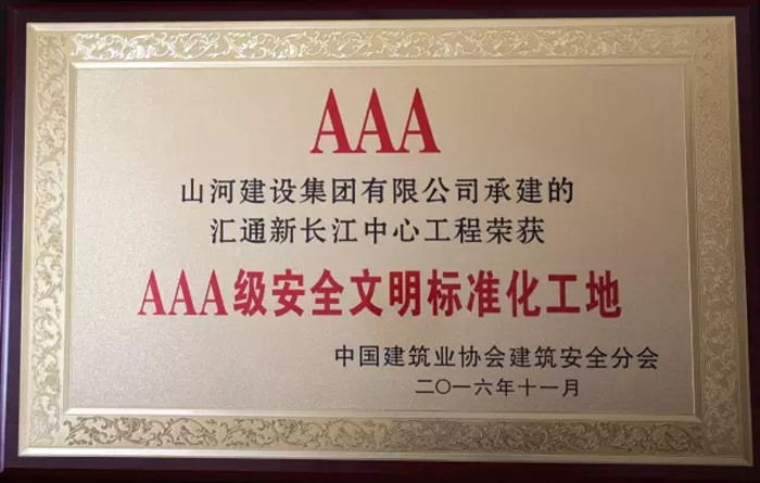 11月30日,2016年中國(guó)建筑業(yè)協(xié)會(huì)建筑安全分會(huì)年會(huì)暨理事會(huì)在合肥召開。由山河集團(tuán)承建的襄陽(yáng)首信•東方墨爾本項(xiàng)目與武漢匯通新長(zhǎng)江中心項(xiàng)目雙雙榮獲2016年“AAA級(jí)安全文明標(biāo)準(zhǔn)化工地”稱號(hào)。