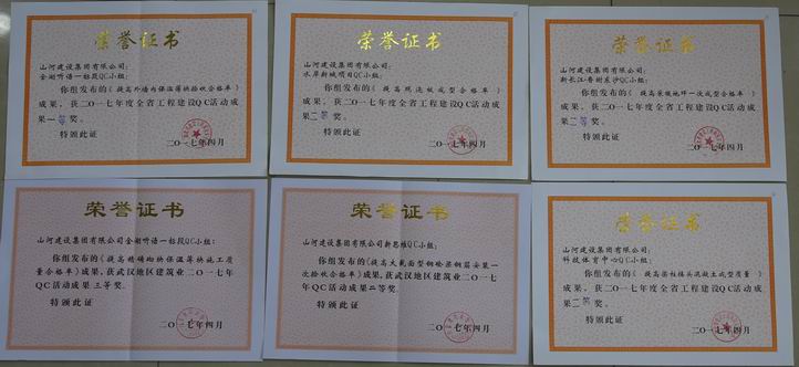從4月底結(jié)束的“武漢地區(qū)建筑業(yè)2017年QC成果交流發(fā)布會(huì)”和 “2017年湖北省工程建設(shè)優(yōu)秀QC成果交流發(fā)布暨評(píng)審會(huì)”獲悉,山河建設(shè)集團(tuán)湖北公司分別榮獲武漢市優(yōu)秀QC成果二等獎(jiǎng)1項(xiàng),三等獎(jiǎng)1項(xiàng);榮獲湖北省優(yōu)秀QC成果一等獎(jiǎng)1項(xiàng),二等獎(jiǎng)3項(xiàng),三等獎(jiǎng)3項(xiàng)。