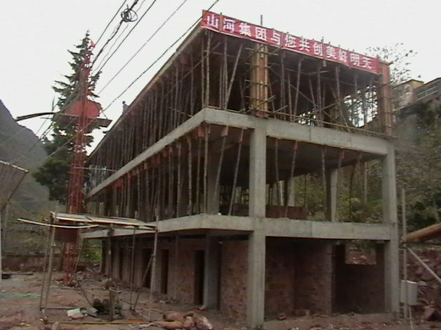 我公司承建的四川省漢源縣大堰鄉(xiāng)中心小學工程經過兩個多月的緊張有序施工,已經初見雛形。宿舍樓主體結構已經封頂,一層填充墻砌筑完成;教學樓三層主體結構正在施工,預計本月23日主體可以封頂;綜合樓施工至一層結構。整個工程計劃將于2008年12月28日竣工。